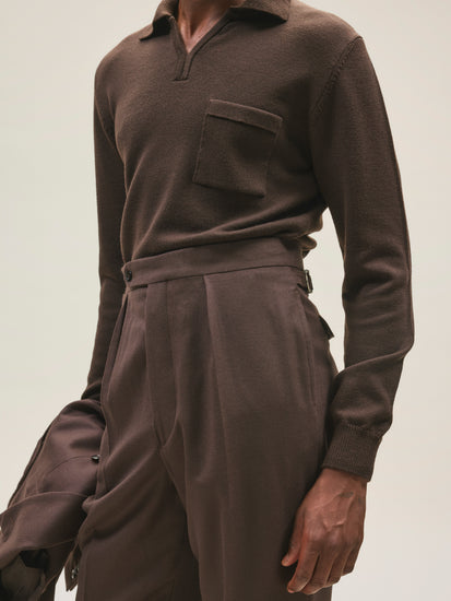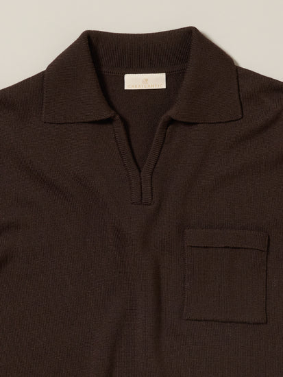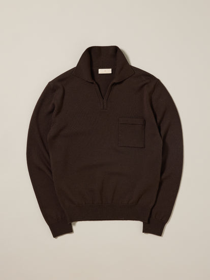 A sports-inspired polo made from 100% fine merino wool yarn, featuring a partially closed front opening, a chest pocket, straight hems, and long sleeves.