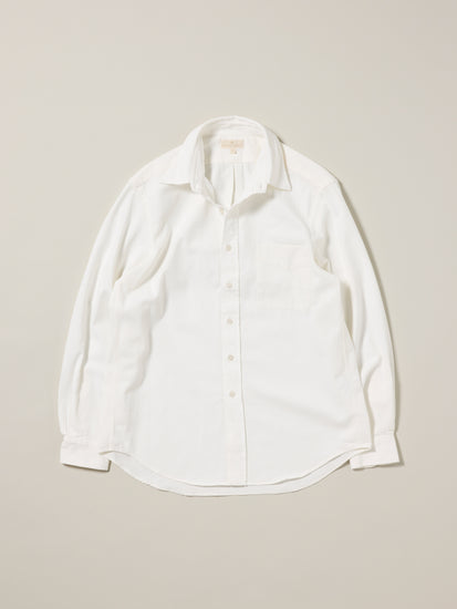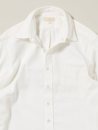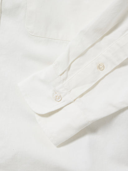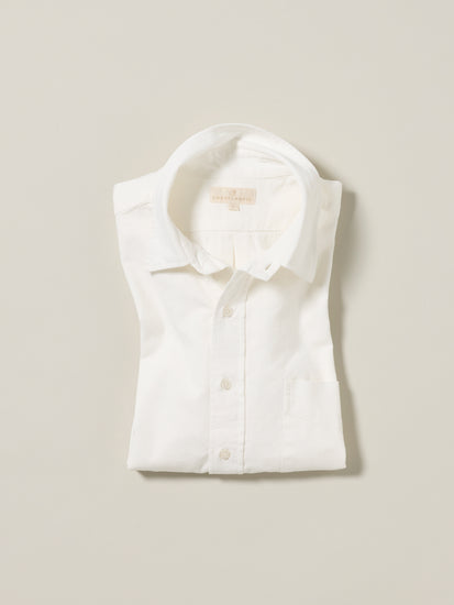The University Twill Shirt. A campus staple and a symbol of timeless elegance. Berkane is cut from 190 gsm (5.6 oz) cotton twill, the same fabric used for our trouser pocket bags. It features a button-down-style collar without buttons and a boxy fit, designed to be worn both tucked in and untucked with ease.