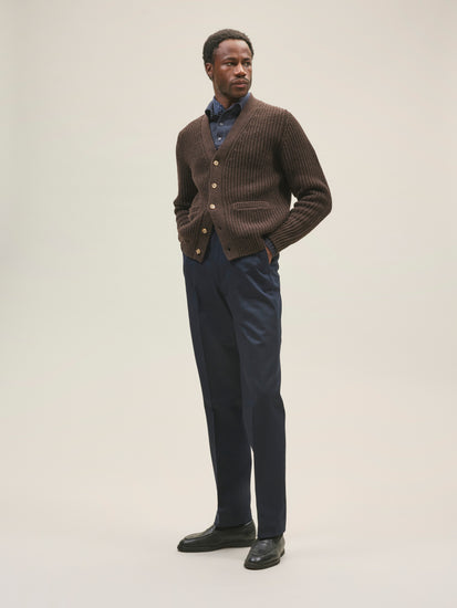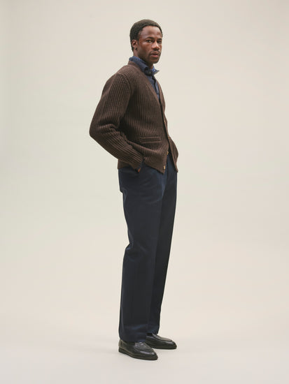 El Jadida takes inspiration from a 1960s naval trouser silhouette, featuring a high-waisted fit with a flat front and zip fly. The trousers are crafted from a 300 gsm (8.9oz) cotton twill, exclusively woven for Casatlantic to meet our specific requirements in durability and aging.