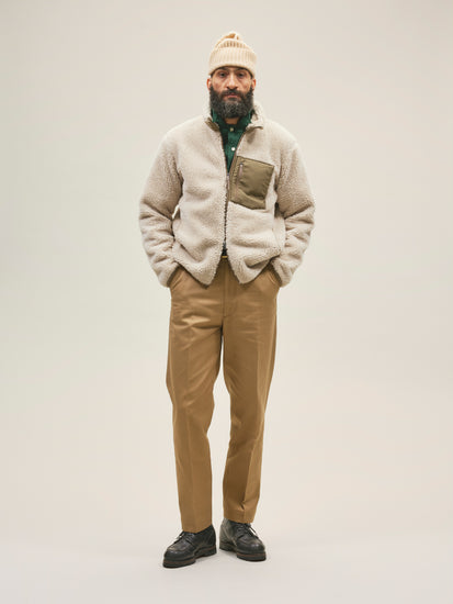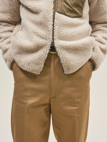 El Jadida takes inspiration from a 1960s naval trouser silhouette, featuring a high-waisted fit with a flat front and zip fly. The trousers are crafted from a 300 gsm (8.9oz) cotton twill, exclusively woven for Casatlantic to meet our specific requirements in durability and aging.