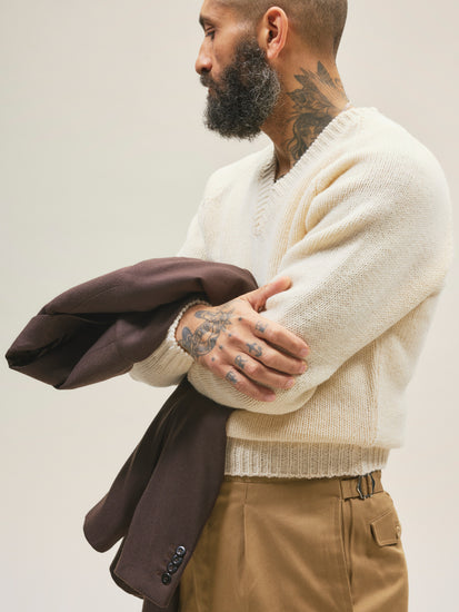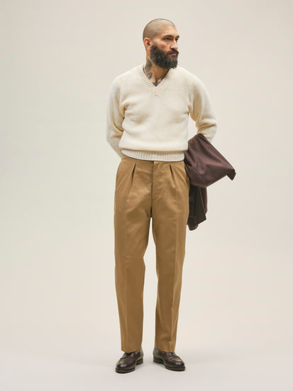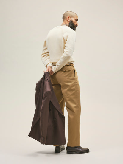 Mogador draws strong influence from British mid-century military tailoring, distinguished by a detailed waist featuring side adjusters, a coin pocket and a full-cut straight leg. The trousers are crafted from a 300 gsm (8.9oz) cotton twill, exclusively woven for Casatlantic to meet our specific requirements in durability and aging.