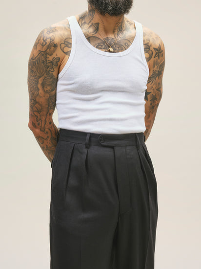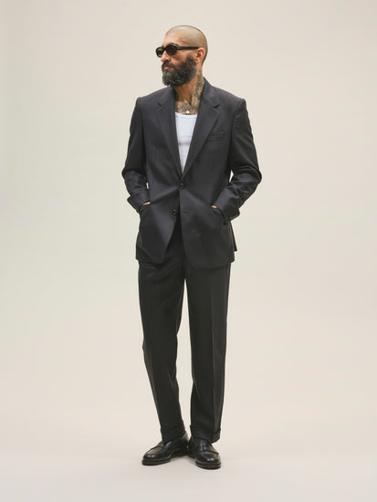 Tanger, our widest fit, draws inspiration from the trousers worn by French officers in the hot deserts and streets of North Africa. It sits high at the waist and offers generous room around the thighs and legs. The trousers are crafted from a 310 gsm (9 oz) brushed wool fabric. Please note that these trousers come unhemmed with a 92cm inseam.